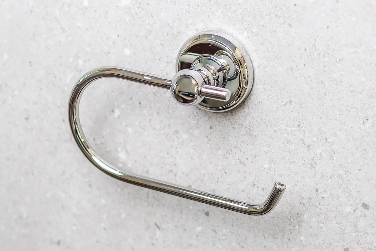 - Ring with a slight bend at the end to prevent the toilet roll from slipping off when pulling on the toilet roll